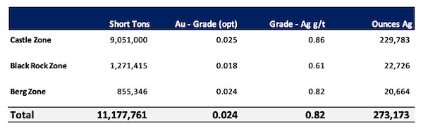 - The updated resource at the Original Zone is separate and distinct from the Castle claim block at Eastside, which hosts near surface historical* oxide gold totaling 273,173 ounces.