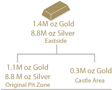 1.1 million ounces of inferred gold and 8.8 million ounces of inferred silver resources have been defined at the Original Zone, which remains open to the south, west and at depth, and possibly to the north and east. The southern margin of the property also hosts historical near surface oxide gold resources. To date, seven (7) large geochemical anomalies have been identified on the property. In addition, A2 has identified 314,000 inferred gold ounces at the Castle Area in the south of A2 with potential for increased resource expansion.